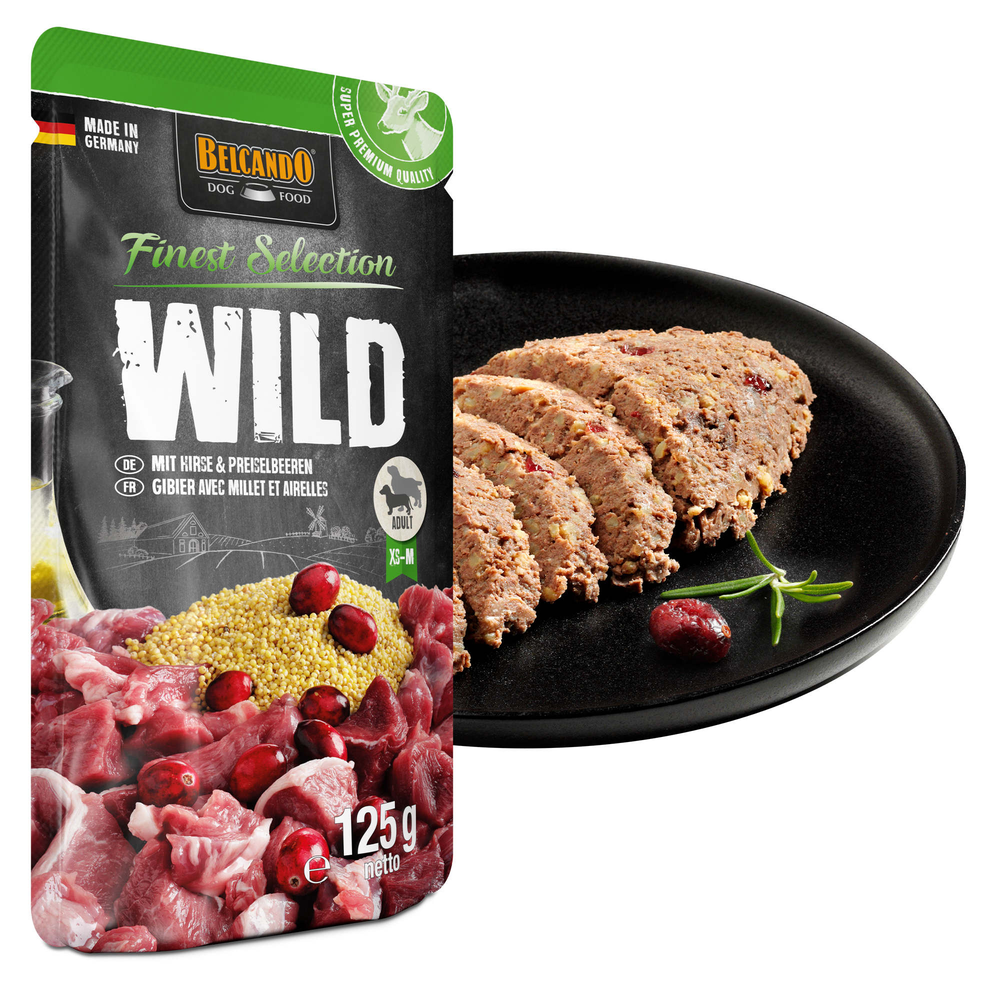 Wild auf Preiselbeeren! Fettarmes Wildfleisch in bester Qualität, fruchtig abgerundet mit vitaminreichen Preiselbeeren und dem ballaststoffreichen Energielieferanten Hirse machen diese Rezeptur zu einem wahren Gaumenschmaus für Deinen Vierbeiner. Ein weiteres Plus der BELCANDO Finest Selection: weiches und glänzendes Fell dank der Extraportion Distelöl.
